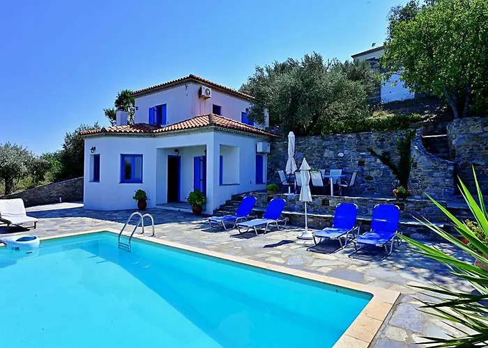 Villa offre également la proximité de sites naturels tels que le Glysteri Beach, situé à 2 km. La propriété se trouve à moins de 20 minutes de marche de Panagitsa of Pyrgos.
